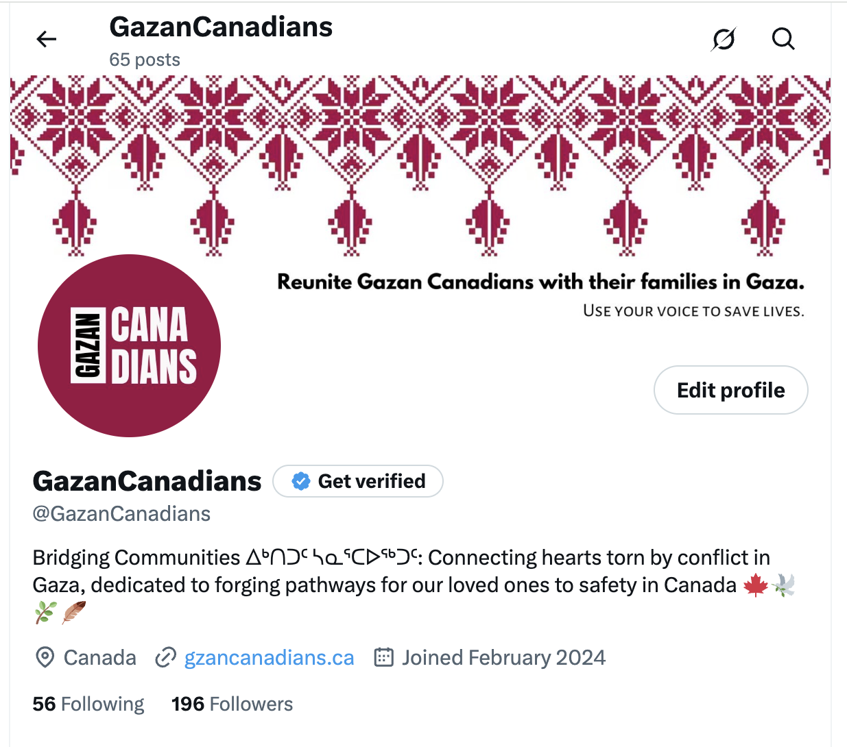 Our message Help us reunite with our loved ones in Gaza.We are Gazan Canadian families fighting to reunite with our loved ones trapped in Gaza. United by grief and hope, we are advocating for justice, dignity, and equal treatment under Canadian law.About us Follow us on our Instagram page to see more stories about us Gazan CanadiansLink to our official Instagram Account Our Twitter (x) account is now live, help us reach government officials on twitter to create an impact Link to our official Twitter Account Join our WhatsApp News channel to receive instant updates & instructions about actions such as email campaigns, Sit-Ins, Vigils Link to WhatsApp Channel Follow us on TikTok Link to our official TikTok
